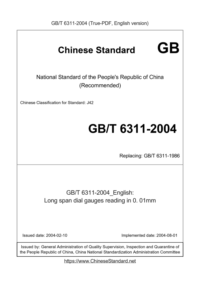 GB/T 6311-2004: Long span dial gauges reading in 0. 01mm