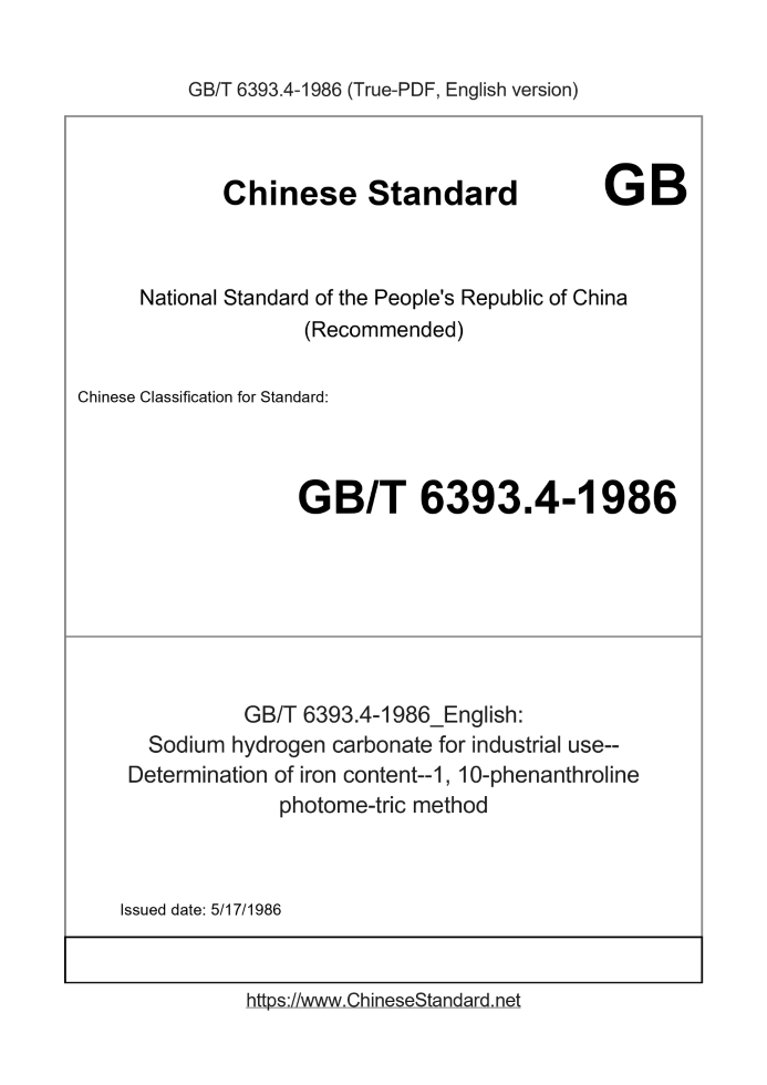 GB/T 6393.4-1986RFQ ASK 3 days Sodium hydrogen carbonate for industrial use--Determination of iron content--1, 10-phenanthroline photome-tric method Obsolete