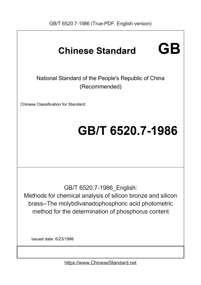 Basic dataStandard ID: GB/T 6520.7-1986 (GB/T6520.7-1986)Description (Translated English): Methods for chemical analysis of silicon bronze and silicon brass--The molybdivanadophosphoric acid photometric method for the determination of phosphorus content Sector / Industry: National Standard (Recommended) Date of Issue: 6/23/1986 Tips & Frequently Asked Questions:Question 1: How long will the true-PDF of GB/T 6520.7-1986_English be delivered?Answer: Upon your order, we will start to translate GB/T 6520.7-1986_English as soon as possible, and keep you informed of the progress. The lead time is typically 1 ~ 3 working days. The lengthier the document the longer the lead time.Question 2: Can I share the purchased PDF of GB/T 6520.7-1986_English with my colleagues?Answer: Yes. The purchased PDF of GB/T 6520.7-1986_English will be deemed to be sold to your employer/organization who actually pays for it, including your colleagues and your employer's intranet.Question 3: Does the price include tax/VAT?Answer: Yes. Our tax invoice, downloaded/delivered in 9 seconds, includes all tax/VAT and complies with 100+ countries' tax regulations (tax exempted in 100+ countries) -- See Avoidance of Double Taxation Agreements (DTAs): List of DTAs signed between Singapore and 100+ countriesQuestion 4: Do you accept my currency other than USD?Answer: Yes. If you need your currency to be printed on the invoice, please write an email to Sales@ChineseStandard.net. In 2 working-hours, we will create a special link for you to pay in any currencies. Otherwise, follow the normal steps: Add to Cart -- Checkout -- Select your currency to pay. |