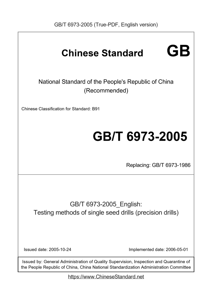 GB/T 6973-2005: Testing methods of single seed drills (precision drills)