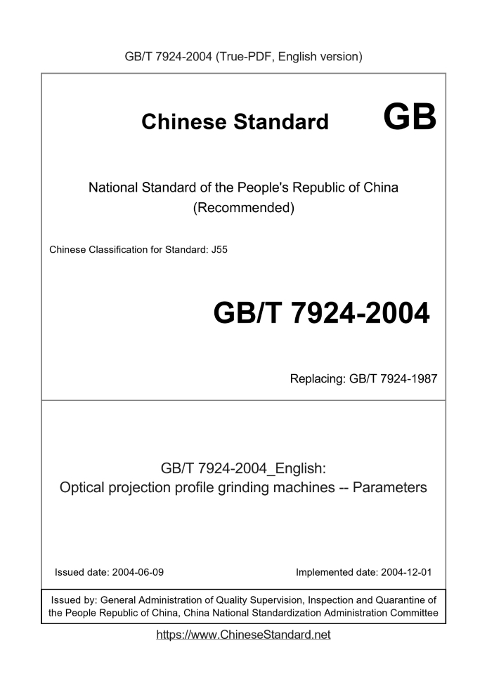 GB/T 7924-2004: Optical projection profile grinding machines -- Parameters