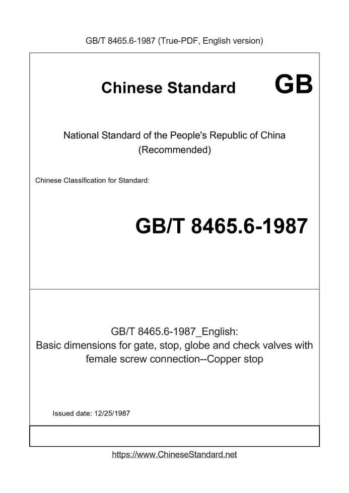 GB/T 8465.6-1987RFQ ASK 3 days Basic dimensions for gate, stop, globe and check valves with female screw connection--Copper stop Obsolete