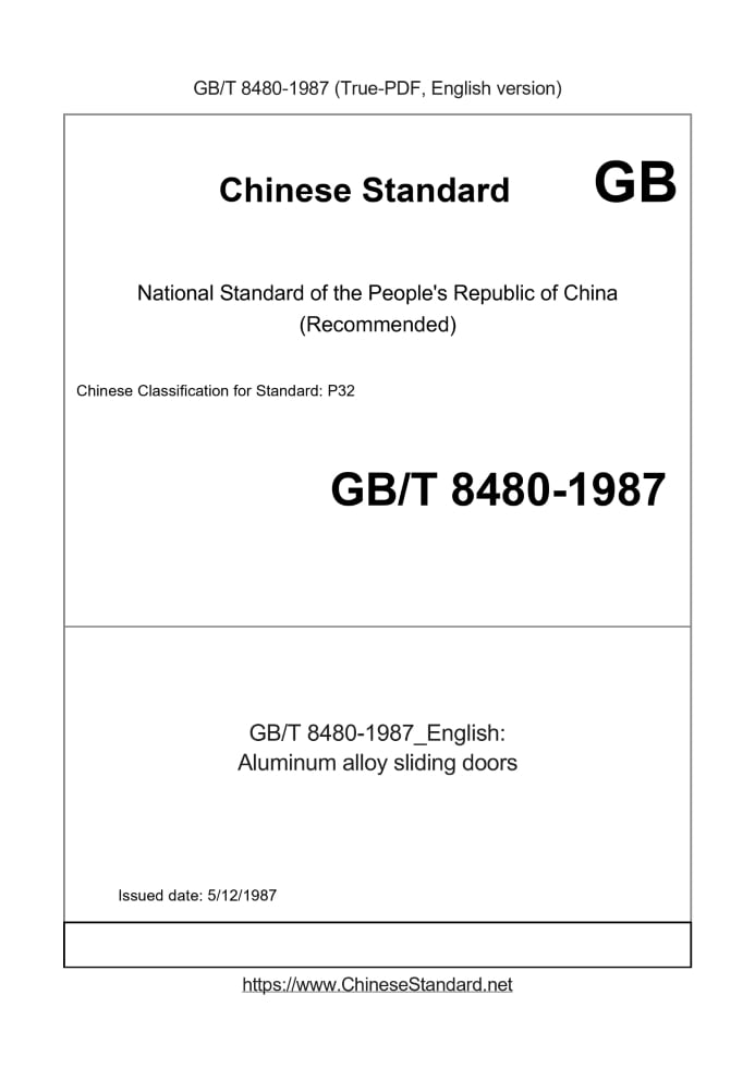 GB/T 8480-1987: Aluminum alloy sliding doors