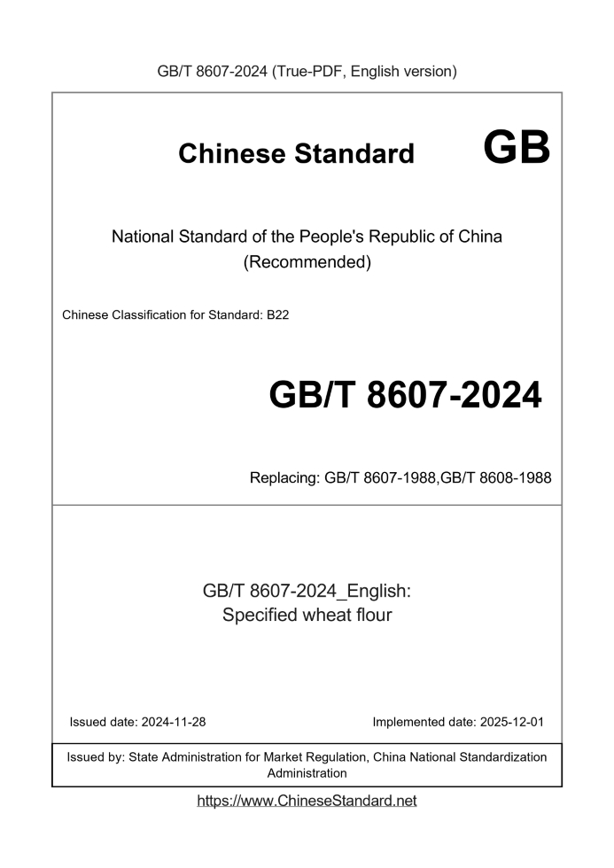 Delivery: <= 3 days. True-PDF full-copy in English will be manually translated and delivered via email. GB/T 8607-2024: Specified wheat flour Status: Valid GB/T 8607: Historical versions