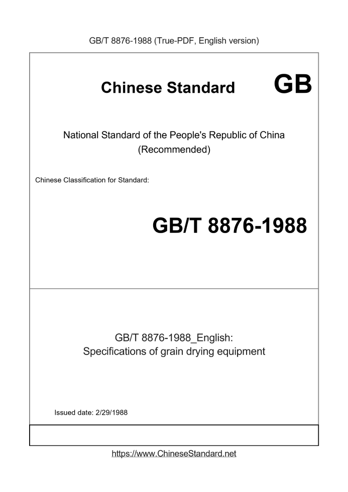 Basic dataStandard ID: GB/T 8876-1988 (GB/T8876-1988)Description (Translated English): Specifications of grain drying equipment Sector / Industry: National Standard (Recommended) Date of Issue: 2/29/1988 Tips & Frequently Asked Questions:Question 1: How long will the true-PDF of GB/T 8876-1988_English be delivered?Answer: Upon your order, we will start to translate GB/T 8876-1988_English as soon as possible, and keep you informed of the progress. The lead time is typically 1 ~ 3 working days. The lengthier the document the longer the lead time.Question 2: Can I share the purchased PDF of GB/T 8876-1988_English with my colleagues?Answer: Yes. The purchased PDF of GB/T 8876-1988_English will be deemed to be sold to your employer/organization who actually pays for it, including your colleagues and your employer's intranet.Question 3: Does the price include tax/VAT?Answer: Yes. Our tax invoice, downloaded/delivered in 9 seconds, includes all tax/VAT and complies with 100+ countries' tax regulations (tax exempted in 100+ countries) -- See Avoidance of Double Taxation Agreements (DTAs): List of DTAs signed between Singapore and 100+ countriesQuestion 4: Do you accept my currency other than USD?Answer: Yes. If you need your currency to be printed on the invoice, please write an email to Sales@ChineseStandard.net. In 2 working-hours, we will create a special link for you to pay in any currencies. Otherwise, follow the normal steps: Add to Cart -- Checkout -- Select your currency to pay. |