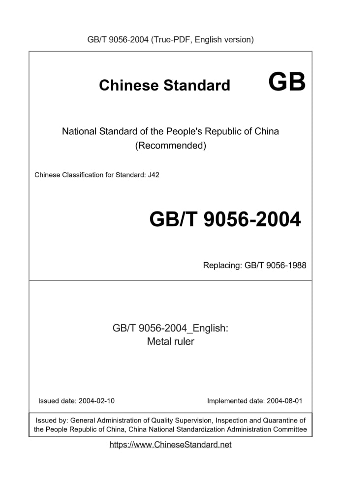 Delivery: <= 3 days. True-PDF full-copy in English will be manually translated and delivered via email. GB/T 9056-2004: Metal ruler Status: Valid GB/T 9056: Historical versions