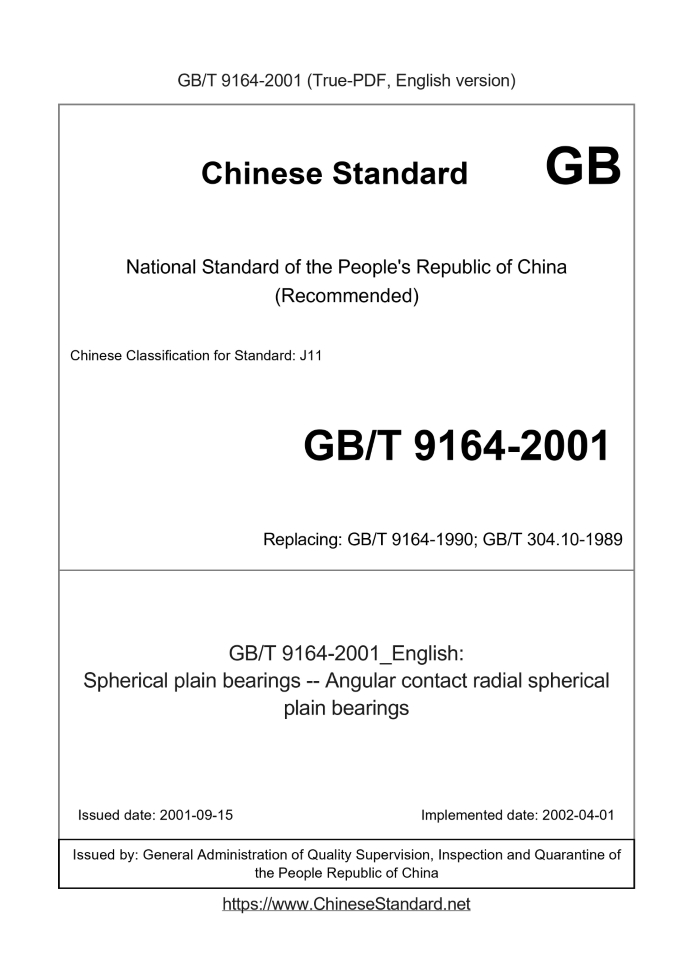 GB/T 9164-2001: Spherical plain bearings -- Angular contact radial spherical plain bearings