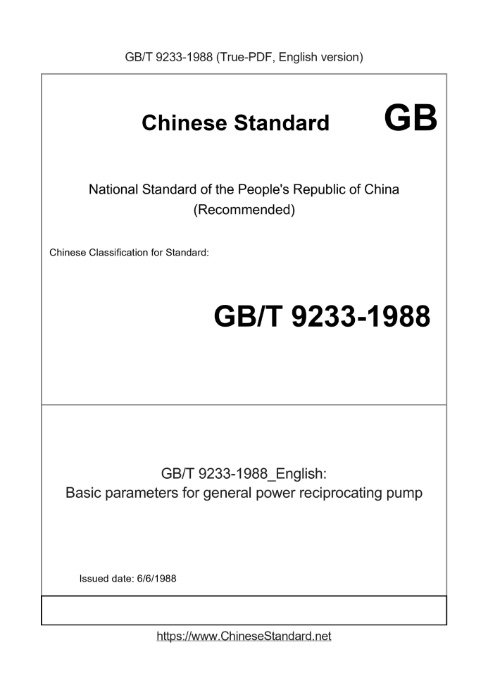 Basic dataStandard ID: GB/T 9233-1988 (GB/T9233-1988)Description (Translated English): Basic parameters for general power reciprocating pump Sector / Industry: National Standard (Recommended) Date of Issue: 6/6/1988 Tips & Frequently Asked Questions:Question 1: How long will the true-PDF of GB/T 9233-1988_English be delivered?Answer: Upon your order, we will start to translate GB/T 9233-1988_English as soon as possible, and keep you informed of the progress. The lead time is typically 1 ~ 3 working days. The lengthier the document the longer the lead time.Question 2: Can I share the purchased PDF of GB/T 9233-1988_English with my colleagues?Answer: Yes. The purchased PDF of GB/T 9233-1988_English will be deemed to be sold to your employer/organization who actually pays for it, including your colleagues and your employer's intranet.Question 3: Does the price include tax/VAT?Answer: Yes. Our tax invoice, downloaded/delivered in 9 seconds, includes all tax/VAT and complies with 100+ countries' tax regulations (tax exempted in 100+ countries) -- See Avoidance of Double Taxation Agreements (DTAs): List of DTAs signed between Singapore and 100+ countriesQuestion 4: Do you accept my currency other than USD?Answer: Yes. If you need your currency to be printed on the invoice, please write an email to Sales@ChineseStandard.net. In 2 working-hours, we will create a special link for you to pay in any currencies. Otherwise, follow the normal steps: Add to Cart -- Checkout -- Select your currency to pay. |