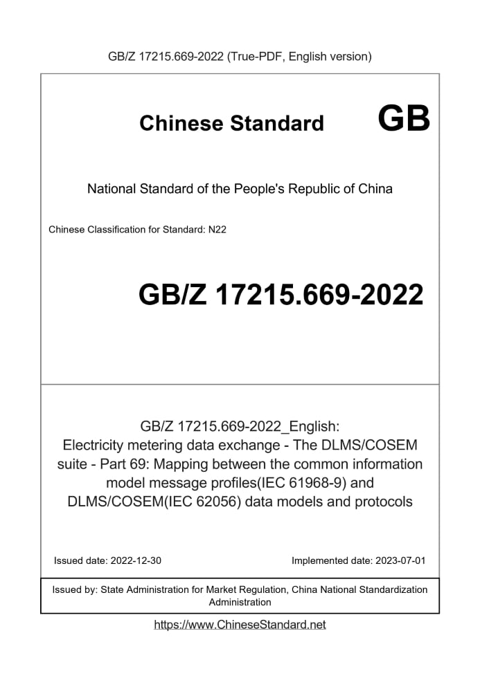 Delivery: <= 6 days. True-PDF full-copy in English will be manually translated and delivered via email. GBZ17215.669-2022: Electricity metering data exchange - The DLMS/COSEM suite - Part 69: Mapping between the common information model message profiles(IEC 61968-9) and DLMS/COSEM(IEC 62056) data models and protocols Status: Valid