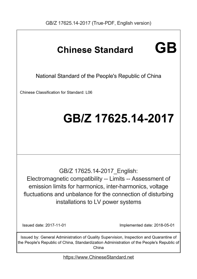 Delivery: <= 8 days. True-PDF full-copy in English will be manually translated and delivered via email. GBZ17625.14-2017: Electromagnetic compatibility -- Limits -- Assessment of emission limits for harmonics, inter-harmonics, voltage fluctuations and unbalance for the connection of disturbing installations to LV power systems Status: Valid