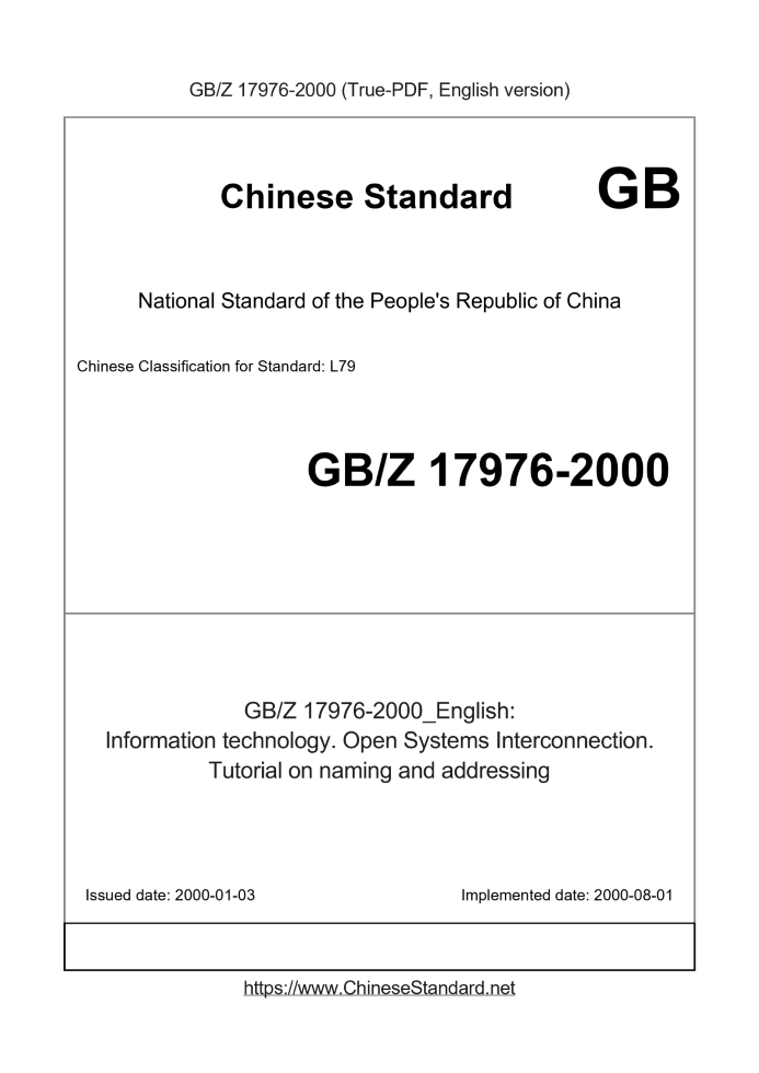 GB/Z 17976-2000RFQ ASK 4 days Information technology. Open Systems Interconnection. Tutorial on naming and addressing Obsolete