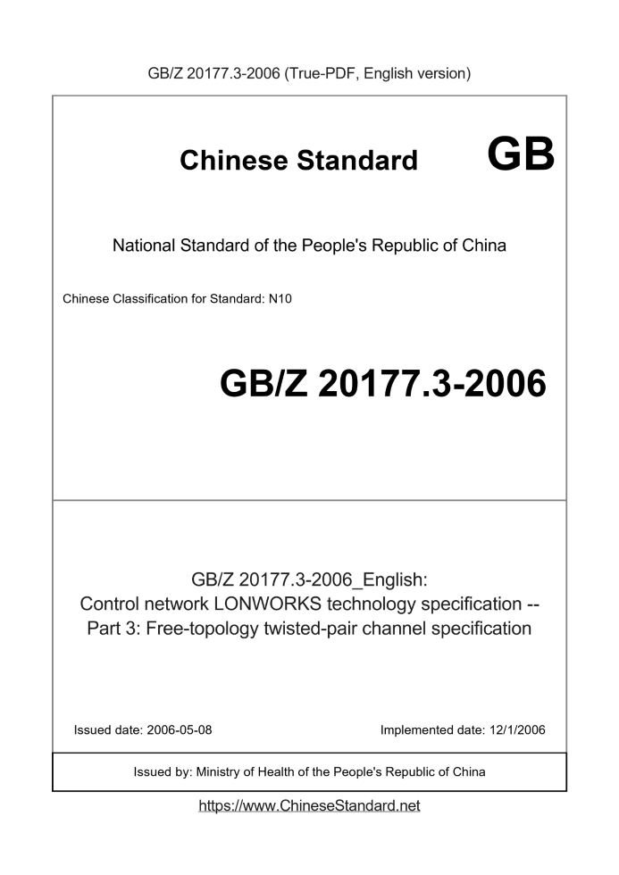GB/Z 20177.3-2006419 Add to Cart 3 days Control network LONWORKS technology specification -- Part 3: Free-topology twisted-pair channel specification Valid