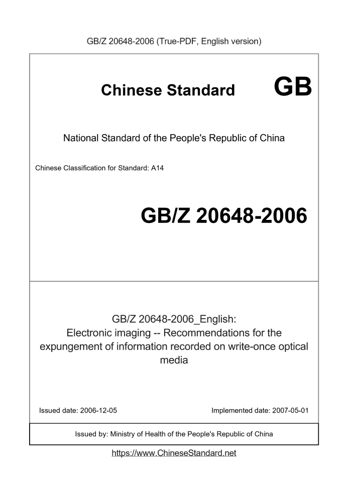 GBZ20648-2006: Electronic imaging -- Recommendations for the expungement of information recorded on write-once optical media