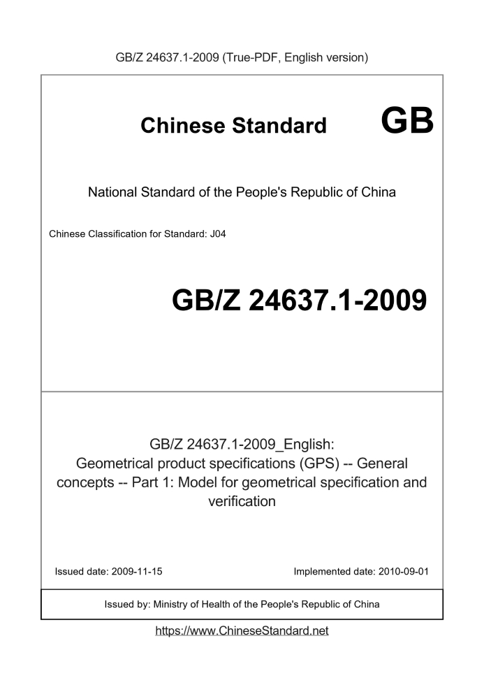 Basic dataStandard ID: GB/Z 24637.1-2009 (GB/Z24637.1-2009)Description (Translated English): Geometrical product specifications (GPS) -- General concepts -- Part 1: Model for geometrical specification and verification Sector / Industry: National Standard Classification of Chinese Standard: J04 Classification of International Standard: 17.040.10 Word Count Estimation: 40,487 Date of Issue: 2009-11-15 Date of Implementation: 2010-09-01 Quoted Standard: GB/T 18780.1-2002; GB/Z 24637.2; JJF 1001-1998 Adopted Standard: ISO/TS 17450-1-2005, IDT Regulation (derived from): ?National Standard Approval Announcement 2009 No.13 (Total No.153) Issuing agency(ies): Ministry of Health of the People's Republic of China Summary: This standard applies to geometric technical standards. This section geometry provides technical standards and verification mode, and define the corresponding concept, also gives the mathematical foundations associated with the model concepts. GBZ24637.1-2009: Geometrical product specifications (GPS) -- General concepts -- Part 1: Model for geometrical specification and verification---This is a DRAFT version for illustration, not a final translation. Full copy of true-PDF in English version (including equations, symbols, images, flow-chart, tables, and figures etc.) will be manually/carefully translated upon your order. Geometrical product specifications (GPS). General concepts.Part 1. Model for geometrical specification and verification ICS 17.040.10 J04 People's Republic of China national standardization of technical guidance documents GB /Z24637.1-2009/ISO /TS17450-1..2005 Product Geometry Specifications (GPS) Universal concept Part 1. Geometrical norms and models for validation (ISO /T S17450-1..2005, IDT) Posted.2009-11-15 2010-09-01 implementation General Administration of Quality Supervision, Inspection and Quarantine of People's Republic of China China National Standardization Administration released Directory Foreword Ⅲ 1 Scope 1 2 Normative references 1 3 Terms and definitions 1 4 Applications and Future Prospects 4 5 Overview 5 6 elements 6 6.1 Overview 6 6.2 Ideal Element 6 6.3 Non-ideal elements 7 7 Features 8 7.1 Overview 8 7.2 Essential Features of Ideal Element 8 7.3 Orientation Features Between Ideal Elements 8 7.4 Non-ideal elements and ideal features of the orientation between the features 9 8 Operation 9 8.1 Element Operation 9 8.2 Assessment 12 9 Specification 13 9.1 Overview 13 9.2 Size Specification 13 9.3 Regional Specifications 13 9.4 Deviation variation 14 10 verification 14 Appendix A (informative) on GB/T 1182 Application Example 15 Appendix B (Informative) Mathematical Symbols and Definitions 24 Appendix C (informative) tolerance and measurement of comparison between 32 Appendix D (informative) Features of the concept of Figure 34 Appendix E (Informative) Location in GPS Matrix Model 35 References 36 GB /Z24637.1-2009/ISO /TS17450-1..2005 ForewordGB /Z24637 "General Geometrical Product Specifications (GPS)" national standardization of technical guidance is divided into two parts. --- Part 1. Geometrical norms and verification model; --- Part 2. Basic rules, norms, set of operations and uncertainty. This section GB /Z24637 Part 1. This section identical with the international standard technical specifications ISO /T S17450-1..2005 "Generic Product Generic Specification (GPS) General Concepts Part 1. Geometrical norms and verification model "(in English). This section Equivalent Translation International Standard Technical Specification ISO /T S17450-1..2005. For ease of use, this section made the following editorial changes. --- International Standard Specification for this part of the text be replaced by "this section"; --- Removed the foreword and introduction of the international standard technical specifications; --- "JJF1001-1998 common measurement terms and definitions" and "VIM1993 International Metrology common basic terms" content; --- In technical content and writing format with the international standard technical specifications. This part of the Appendix A, Appendix B, Appendix C, Appendix D and Appendix E are informative appendix. This part of the National Product Size and Geometry Technical Standardization Technical Committee proposed and centralized. This section drafted by. Machine Productivity Promotion Center, China Aviation Technology Institute, Zhengzhou University, Huazhong University of Science and Technology, Xi'an Jiaotong University, Beijing Institute of Technology, Shanghai University, Beijing Institute of Metrology. The main drafters of this section. Li Xiaopei, Wang Xi Li, Zhang Linna, Chiang forward, Zhao Zhuoxian, Zhao Fengxia, Liu Seoul Seoul, Li Ming, Wu Xun, Chen Jingyu. GB /Z24637.1-2009/ISO /TS17450-1..2005 Product Geometry Specifications (GPS) Universal concept Part 1. Geometrical norms and models for validation1 ScopeGB /Z24637 of this part of the geometric technical standards and verification provides a model, and defines the corresponding concepts; also gives the The Mathematical Basis of the Relevant Concepts of Models. This section applies to geometric technical standards.2 Normative referencesThe following documents contain provisions which, through reference in this part of GB /Z24637, become the provisions of this section. Any reference to the date of the citation All subsequent amendments (not including errata content) or revisions do not apply to this section, however, encouraged to be reached under this section The parties to the agreement examine whether the latest versions of these documents are available. For undated references, the latest version applies to this book section. GB/T 18780.1-2002 Geometrical product specifications (GPS) geometric features - Part 1. Basic terms and definitions (ISO 14660-1..1999, IDT) GB /Z24637.2 Generic specifications for products - Generic specifications - Part 2. Basic principles, specifications, set of operations and uncertainty Deflection (GB /Z24637.2-2009, ISO /T