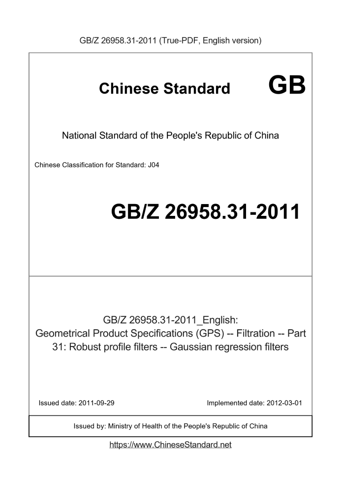 GBZ26958.31-2011: Geometrical Product Specifications (GPS) -- Filtration -- Part 31: Robust profile filters -- Gaussian regression filters