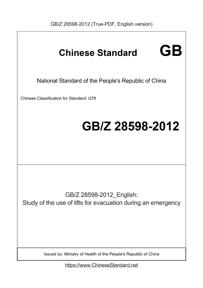 Delivery: <= 3 days. True-PDF full-copy in English will be manually translated and delivered via email. GBZ28598-2012: Study of the use of lifts for evacuation during an emergency Status: Obsolete