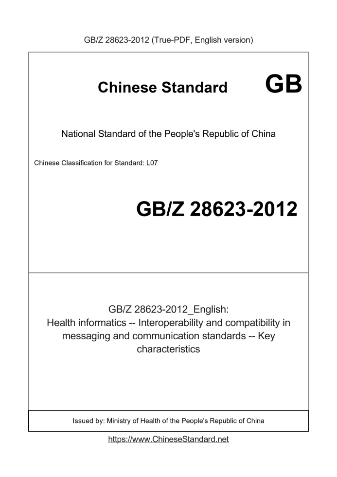 GBZ28623-2012: Health informatics -- Interoperability and compatibility in messaging and communication standards -- Key characteristics
