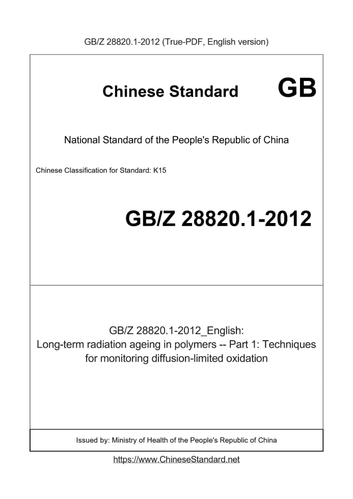 GBZ28820.1-2012: Long-term radiation ageing in polymers -- Part 1: Techniques for monitoring diffusion-limited oxidation