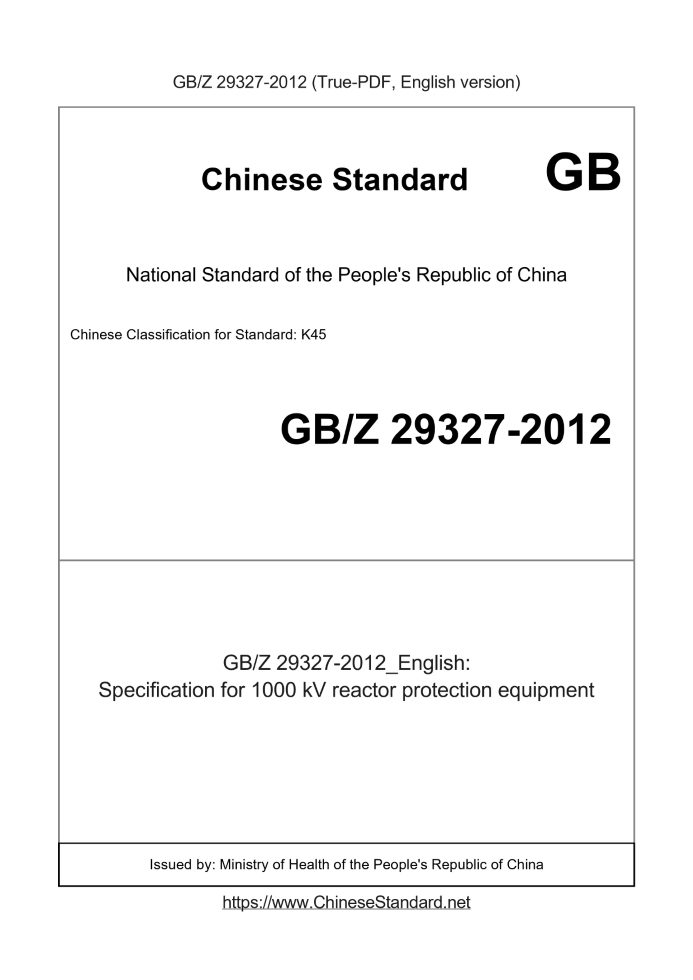 GBZ29327-2012: Specification for 1000 kV reactor protection equipment