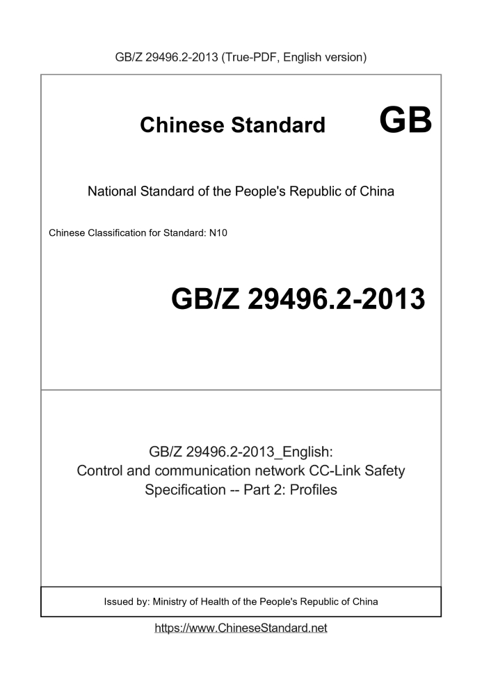 Delivery: <= 6 days. True-PDF full-copy in English will be manually translated and delivered via email. GBZ29496.2-2013: Control and communication network CC-Link Safety Specification -- Part 2: Profiles Status: Valid
