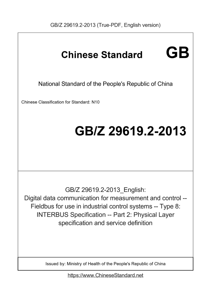 GB/Z 29619.2-20131389 Add to Cart 10 days Digital data communication for measurement and control -- Fieldbus for use in industrial control systems -- Type 8: INTERBUS Specification -- Part 2: Physical Layer specification and service definition Valid