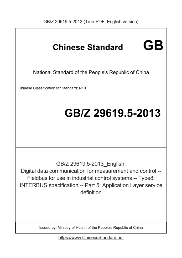 GBZ29619.5-2013: Digital data communication for measurement and control -- Fieldbus for use in industrial control systems -- Type8: INTERBUS specification -- Part 5: Application Layer service definition