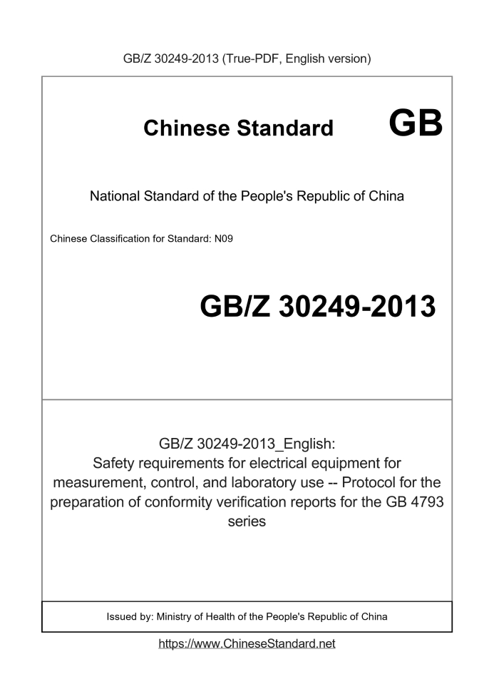 GBZ30249-2013: Safety requirements for electrical equipment for measurement, control, and laboratory use -- Protocol for the preparation of conformity verification reports for the GB 4793 series