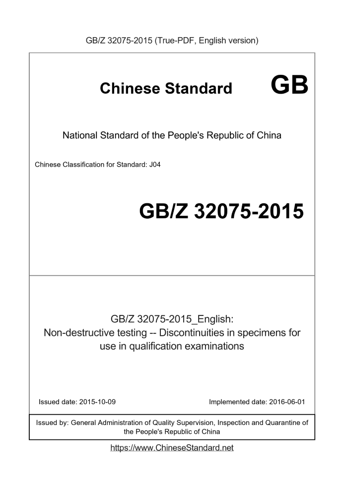 GBZ32075-2015: Non-destructive testing -- Discontinuities in specimens for use in qualification examinations