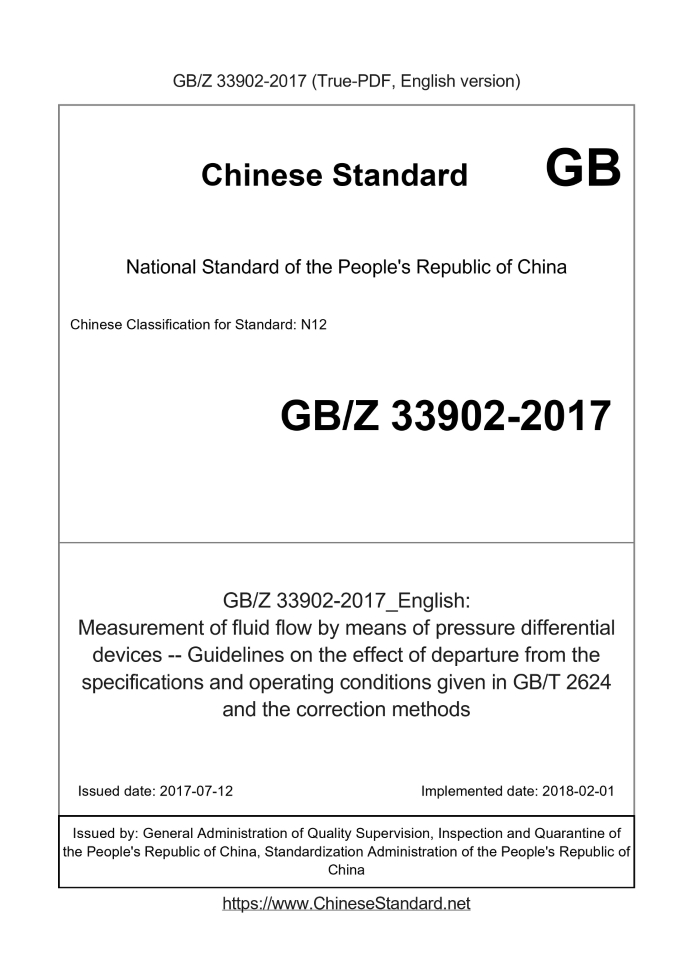 Delivery: <= 6 days. True-PDF full-copy in English will be manually translated and delivered via email. GBZ33902-2017: Measurement of fluid flow by means of pressure differential devices -- Guidelines on the effect of departure from the specifications and operating conditions given in GB/T 2624 and the correction methods Status: Valid