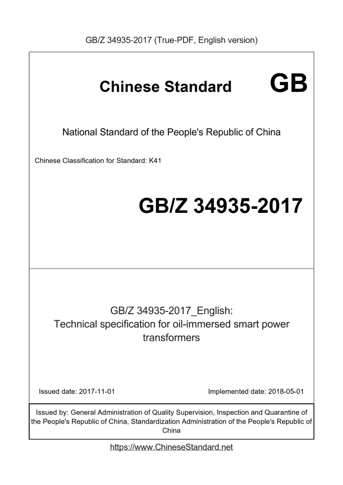 Delivery: <= 7 days. True-PDF full-copy in English will be manually translated and delivered via email. GBZ34935-2017: Technical specification for oil-immersed smart power transformers Status: Valid