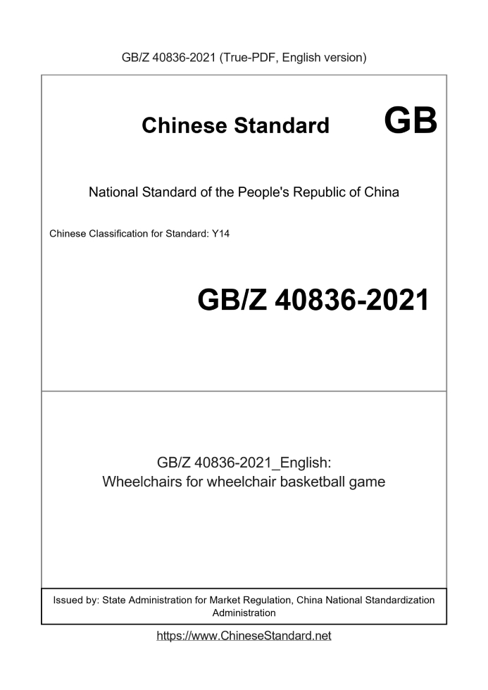 Delivery: <= 4 days. True-PDF full-copy in English will be manually translated and delivered via email. GBZ40836-2021: Wheelchairs for wheelchair basketball game Status: Valid