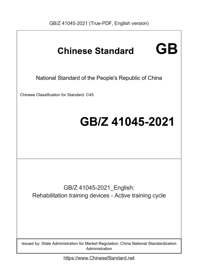Delivery: <= 4 days. True-PDF full-copy in English will be manually translated and delivered via email. GBZ41045-2021: Rehabilitation training devices - Active training cycle Status: Valid