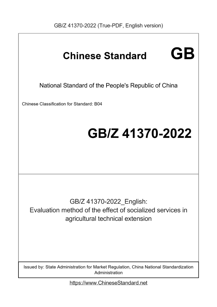 Delivery: <= 3 days. True-PDF full-copy in English will be manually translated and delivered via email. GBZ41370-2022: Evaluation method of the effect of socialized services in agricultural technical extension Status: Valid