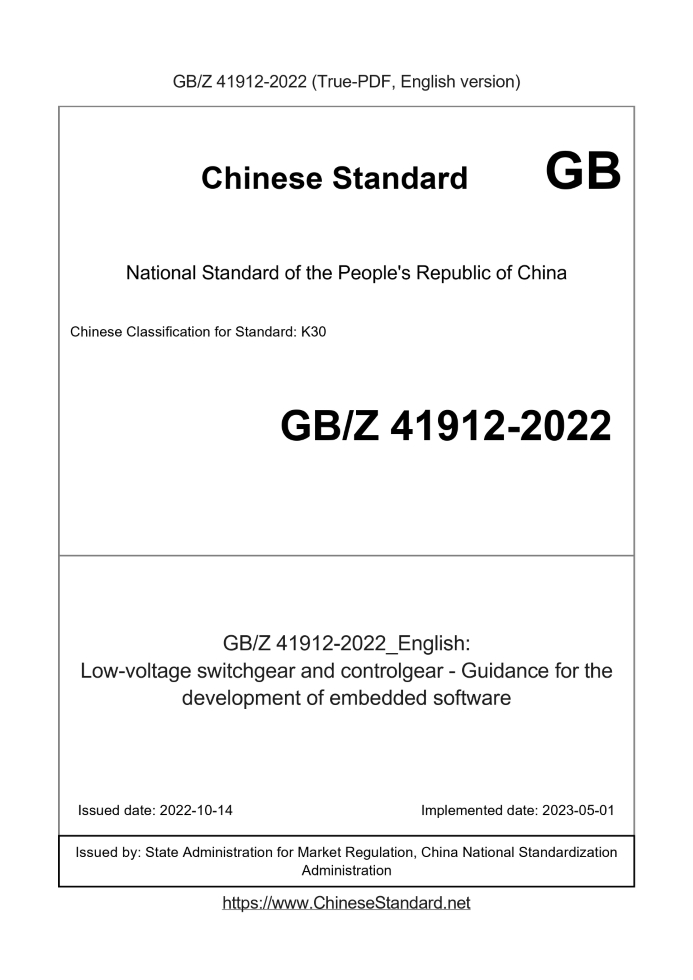 GBZ41912-2022: Low-voltage switchgear and controlgear - Guidance for the development of embedded software
