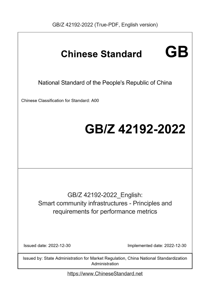 Delivery: <= 7 days. True-PDF full-copy in English will be manually translated and delivered via email. GBZ42192-2022: Smart community infrastructures - Principles and requirements for performance metrics Status: Valid