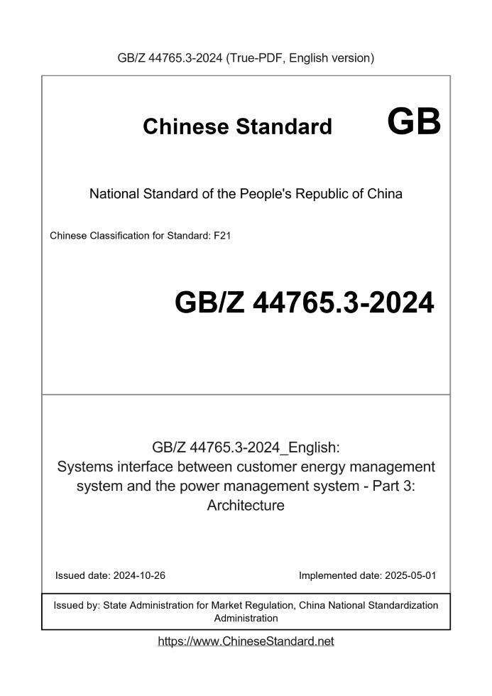 | GBZ44765.3-2024 English PDFUS$664.00 ยท In stock Delivery: <= 5 days. True-PDF full-copy in English will be manually translated and delivered via email. GBZ44765.3-2024: Systems interface between customer energy management system and the power management system - Part 3: Architecture Status: Valid