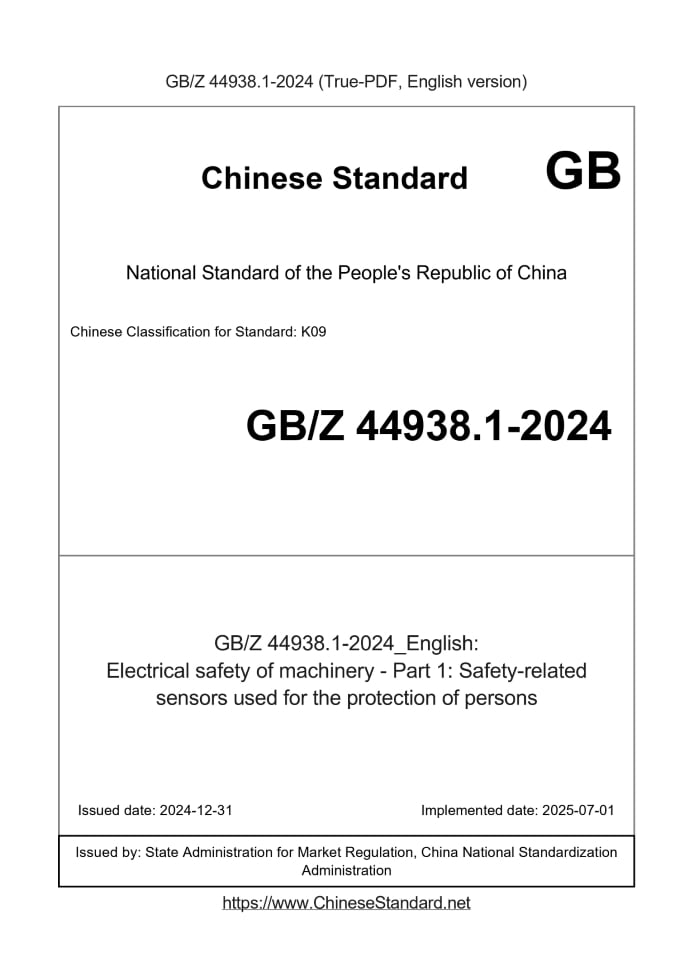 | GBZ44938.1-2024 English PDFUS$1554.00 · In stock Delivery: <= 10 days. True-PDF full-copy in English will be manually translated and delivered via email. GBZ44938.1-2024: Electrical safety of machinery - Part 1: Safety-related sensors used for the protection of persons Status: Valid