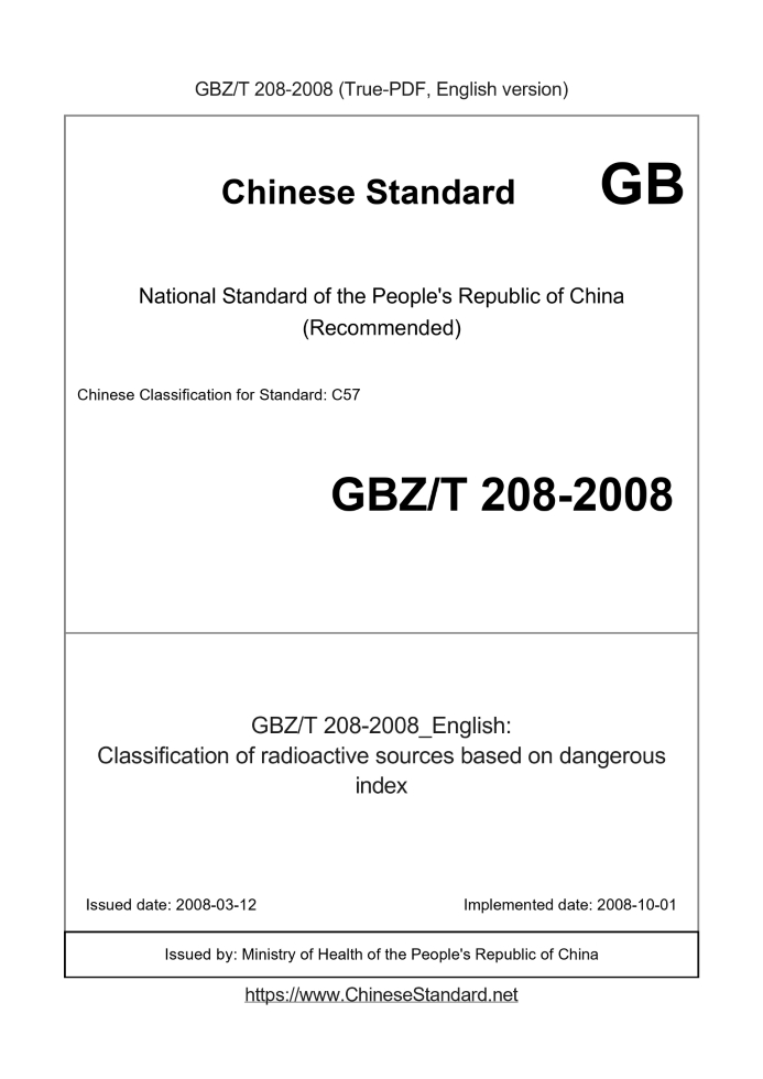 Standard ID: GBZ/T 208-2008 (GBZ/T208-2008)