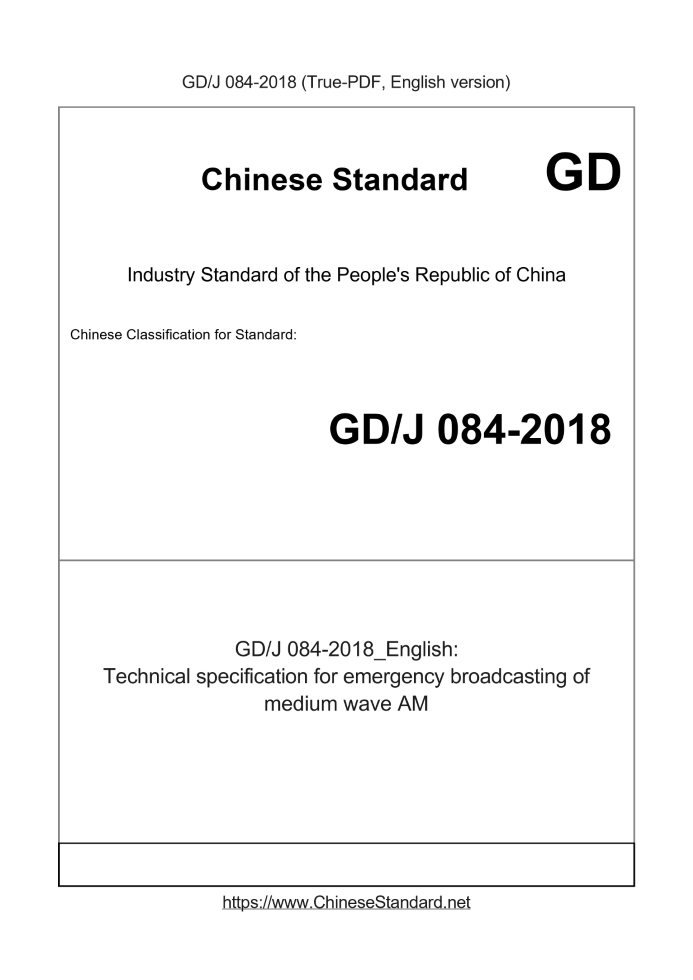 | GD/J 084-2018 | English | 1349 | Add to Cart | 8 days [Need to translate] | Technical specification for emergency broadcasting of medium wave AM |