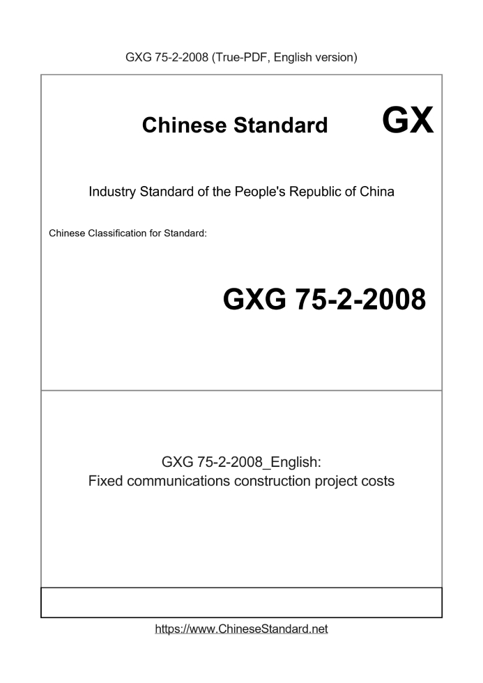 Delivery: <= 5 days. True-PDF full-copy in English will be manually translated and delivered via email. GXG 75-2-2008: Fixed communications construction project costs