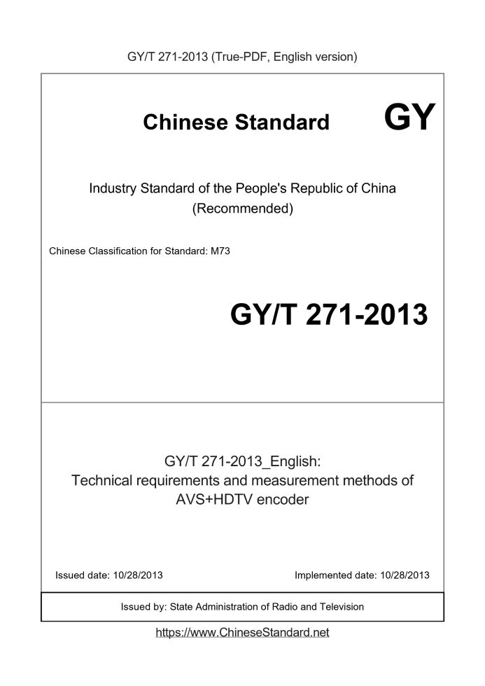 GY/T 271-2013 English PDFUS$499.00 ยท In stock