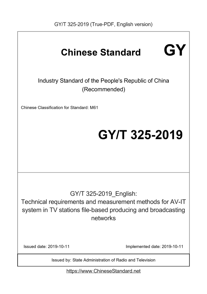 GY/T 325-2019 English PDFUS$929.00 · In stock