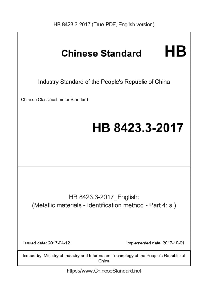 Basic dataStandard ID: HB 8423.3-2017 (HB8423.3-2017)Description (Translated English): (Metallic materials - Identification method - Part 4: s.) Sector / Industry: Aviation Industry Standard Date of Issue: 2017-04-12 Date of Implementation: 2017-10-01 Regulation (derived from): Ministry of Industry and Information Technology Announcement No.14 of 2017 Issuing agency(ies): Ministry of Industry and Information Technology of the People's Republic of China Summary: This standard specifies the principle, instrumentation, working conditions and identification procedures for the identification of alloy structural steel grades by means of spectroscopic analysis. This section applies to the identification of alloy structural steels (including individual spring steels) listed in Table A.1. The types of alloying elements and their contents (ie, mass fraction) of the grades listed in Table A.1 are within the range defined by the strength of each corresponding element in this section, and may also be identified by reference to this section. Tips & Frequently Asked Questions:Question 1: How long will the true-PDF of HB8423.3-2017_English be delivered?Answer: Upon your order, we will start to translate HB8423.3-2017_English as soon as possible, and keep you informed of the progress. The lead time is typically 1 ~ 3 working days. The lengthier the document the longer the lead time.Question 2: Can I share the purchased PDF of HB8423.3-2017_English with my colleagues?Answer: Yes. The purchased PDF of HB8423.3-2017_English will be deemed to be sold to your employer/organization who actually pays for it, including your colleagues and your employer's intranet.Question 3: Does the price include tax/VAT?Answer: Yes. Our tax invoice, downloaded/delivered in 9 seconds, includes all tax/VAT and complies with 100+ countries' tax regulations (tax exempted in 100+ countries) -- See Avoidance of Double Taxation Agreements (DTAs): List of DTAs signed between Singapore and 100+ countriesQuestion 4: Do you accept my currency other than USD?Answer: Yes. If you need your currency to be printed on the invoice, please write an email to Sales@ChineseStandard.net. In 2 working-hours, we will create a special link for you to pay in any currencies. Otherwise, follow the normal steps: Add to Cart -- Checkout -- Select your currency to pay. |