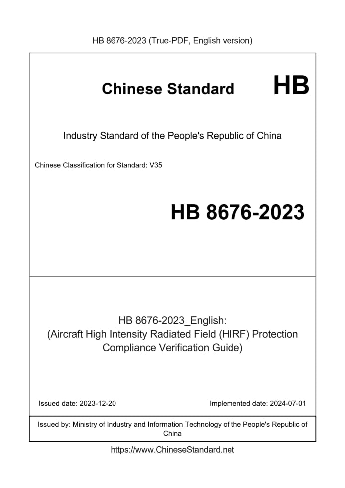 Basic dataStandard ID: HB 8676-2023 (HB8676-2023)Description (Translated English): (Aircraft High Intensity Radiated Field (HIRF) Protection Compliance Verification Guide) Sector / Industry: Aviation Industry Standard Classification of Chinese Standard: V35 Date of Issue: 2023-12-20 Date of Implementation: 2024-07-01 Issuing agency(ies): Ministry of Industry and Information Technology of the People's Republic of China Summary: This standard specifies the guidelines for the compliance verification process, verification methods and related compliance documents for high-intensity radiation field (HIRF) protection of civil aircraft. This standard applies to civil aircraft and other aircraft may be used as a reference. Tips & Frequently Asked Questions:Question 1: How long will the true-PDF of HB8676-2023_English be delivered?Answer: Upon your order, we will start to translate HB8676-2023_English as soon as possible, and keep you informed of the progress. The lead time is typically 1 ~ 3 working days. The lengthier the document the longer the lead time.Question 2: Can I share the purchased PDF of HB8676-2023_English with my colleagues?Answer: Yes. The purchased PDF of HB8676-2023_English will be deemed to be sold to your employer/organization who actually pays for it, including your colleagues and your employer's intranet.Question 3: Does the price include tax/VAT?Answer: Yes. Our tax invoice, downloaded/delivered in 9 seconds, includes all tax/VAT and complies with 100+ countries' tax regulations (tax exempted in 100+ countries) -- See Avoidance of Double Taxation Agreements (DTAs): List of DTAs signed between Singapore and 100+ countriesQuestion 4: Do you accept my currency other than USD?Answer: Yes. If you need your currency to be printed on the invoice, please write an email to Sales@ChineseStandard.net. In 2 working-hours, we will create a special link for you to pay in any currencies. Otherwise, follow the normal steps: Add to Cart -- Checkout -- Select your currency to pay. |