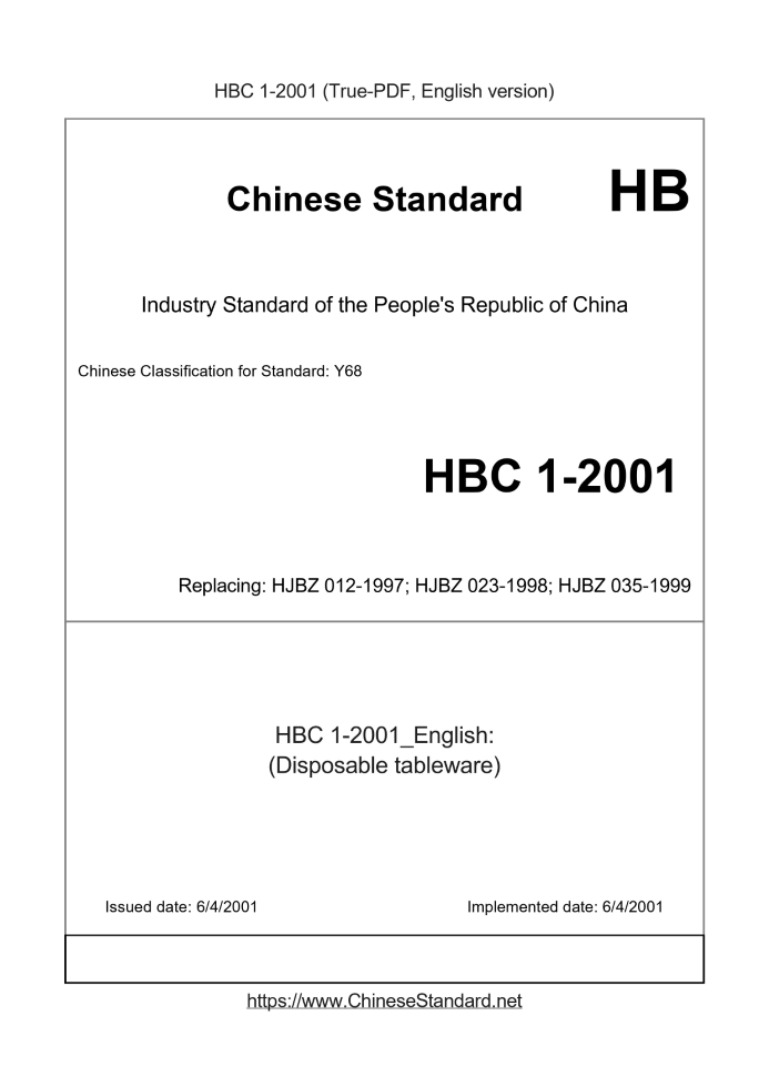 Delivery: <= 2 days. True-PDF full-copy in English will be manually translated and delivered via email. HBC1-2001: (Disposable tableware) Status: Obsolete