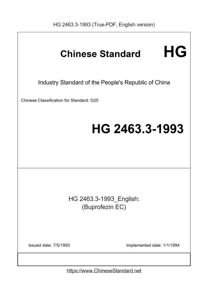 Delivery: <= 2 days. True-PDF full-copy in English will be manually translated and delivered via email. HG 2463.3-1993: (Buprofezin EC) Status: Obsolete