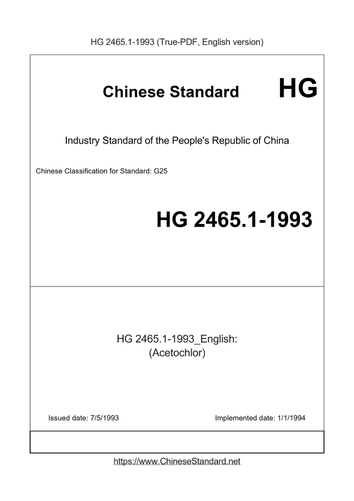 Delivery: <= 3 days. True-PDF full-copy in English will be manually translated and delivered via email. HG 2465.1-1993: (Acetochlor) Status: Obsolete
