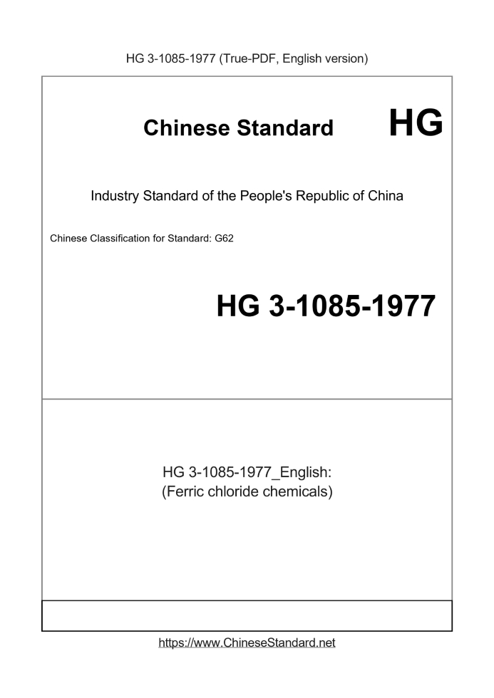Delivery: <= 2 days. True-PDF full-copy in English will be manually translated and delivered via email. HG 3-1085-1977: (Ferric chloride chemicals) Status: Obsolete