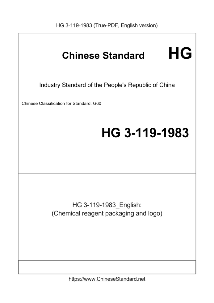 Basic dataStandard ID: HG 3-119-1983 (HG3-119-1983)Description (Translated English): (Chemical reagent packaging and logo) Sector / Industry: Chemical Industry Standard Classification of Chinese Standard: G60 Regulation (derived from): Newer GB 15346-1994 published, this standard is abolished Tips & Frequently Asked Questions:Question 1: How long will the true-PDF of HG 3-119-1983_English be delivered?Answer: Upon your order, we will start to translate HG 3-119-1983_English as soon as possible, and keep you informed of the progress. The lead time is typically 1 ~ 3 working days. The lengthier the document the longer the lead time.Question 2: Can I share the purchased PDF of HG 3-119-1983_English with my colleagues?Answer: Yes. The purchased PDF of HG 3-119-1983_English will be deemed to be sold to your employer/organization who actually pays for it, including your colleagues and your employer's intranet.Question 3: Does the price include tax/VAT?Answer: Yes. Our tax invoice, downloaded/delivered in 9 seconds, includes all tax/VAT and complies with 100+ countries' tax regulations (tax exempted in 100+ countries) -- See Avoidance of Double Taxation Agreements (DTAs): List of DTAs signed between Singapore and 100+ countriesQuestion 4: Do you accept my currency other than USD?Answer: Yes. If you need your currency to be printed on the invoice, please write an email to Sales@ChineseStandard.net. In 2 working-hours, we will create a special link for you to pay in any currencies. Otherwise, follow the normal steps: Add to Cart -- Checkout -- Select your currency to pay. |