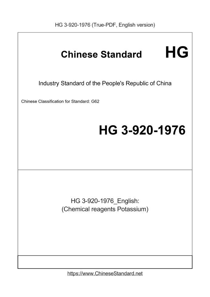 Delivery: <= 2 days. True-PDF full-copy in English will be manually translated and delivered via email. HG 3-920-1976: (Chemical reagents Potassium) Status: Obsolete